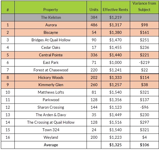 Comparable Property Rent